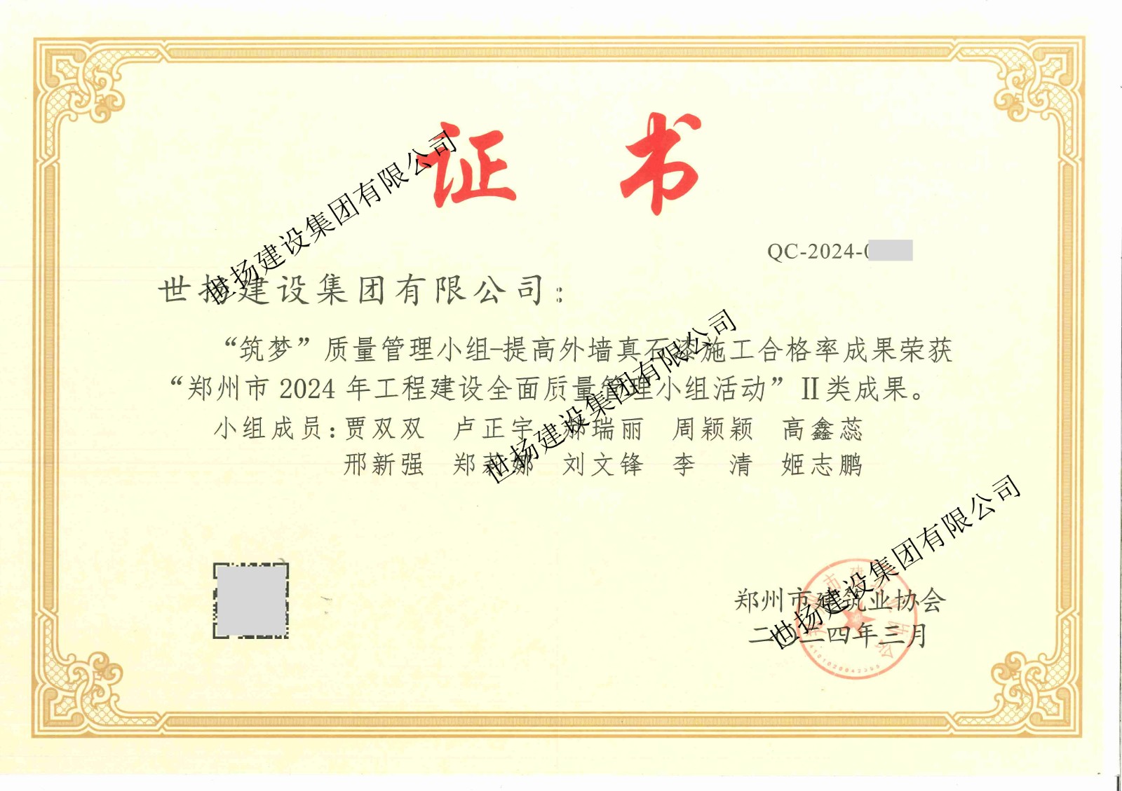 2024鄭州市建筑業(yè)協(xié)會QC小組證書