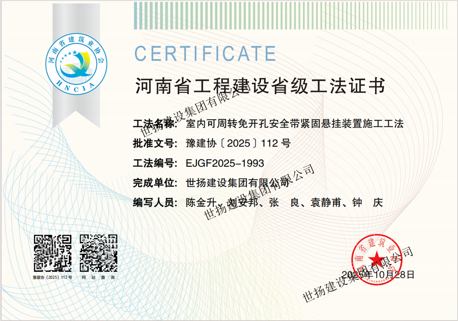 2025河南省工程建設(shè)省級(jí)工法證書(shū)
