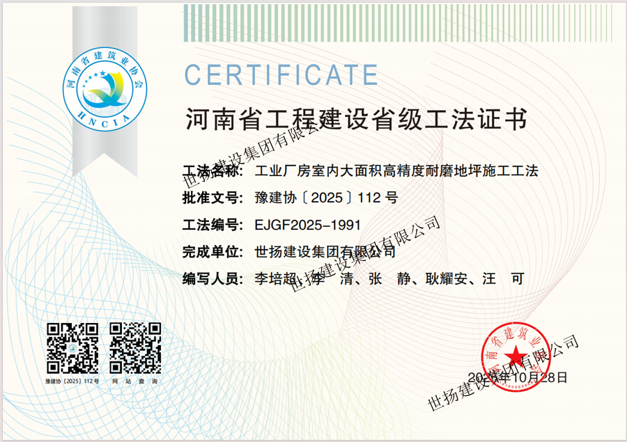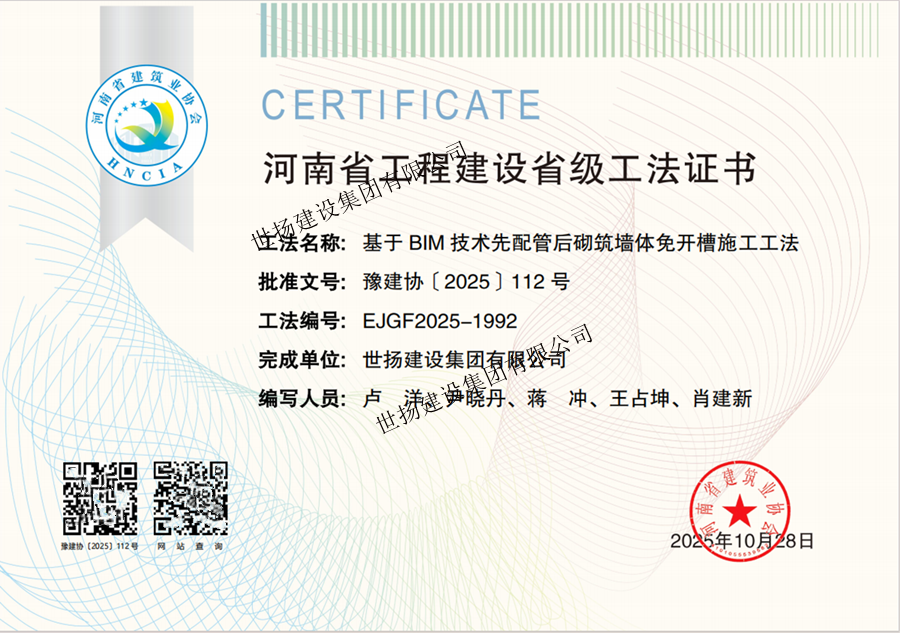 2025河南省工程建設(shè)省級(jí)工法證書(shū)